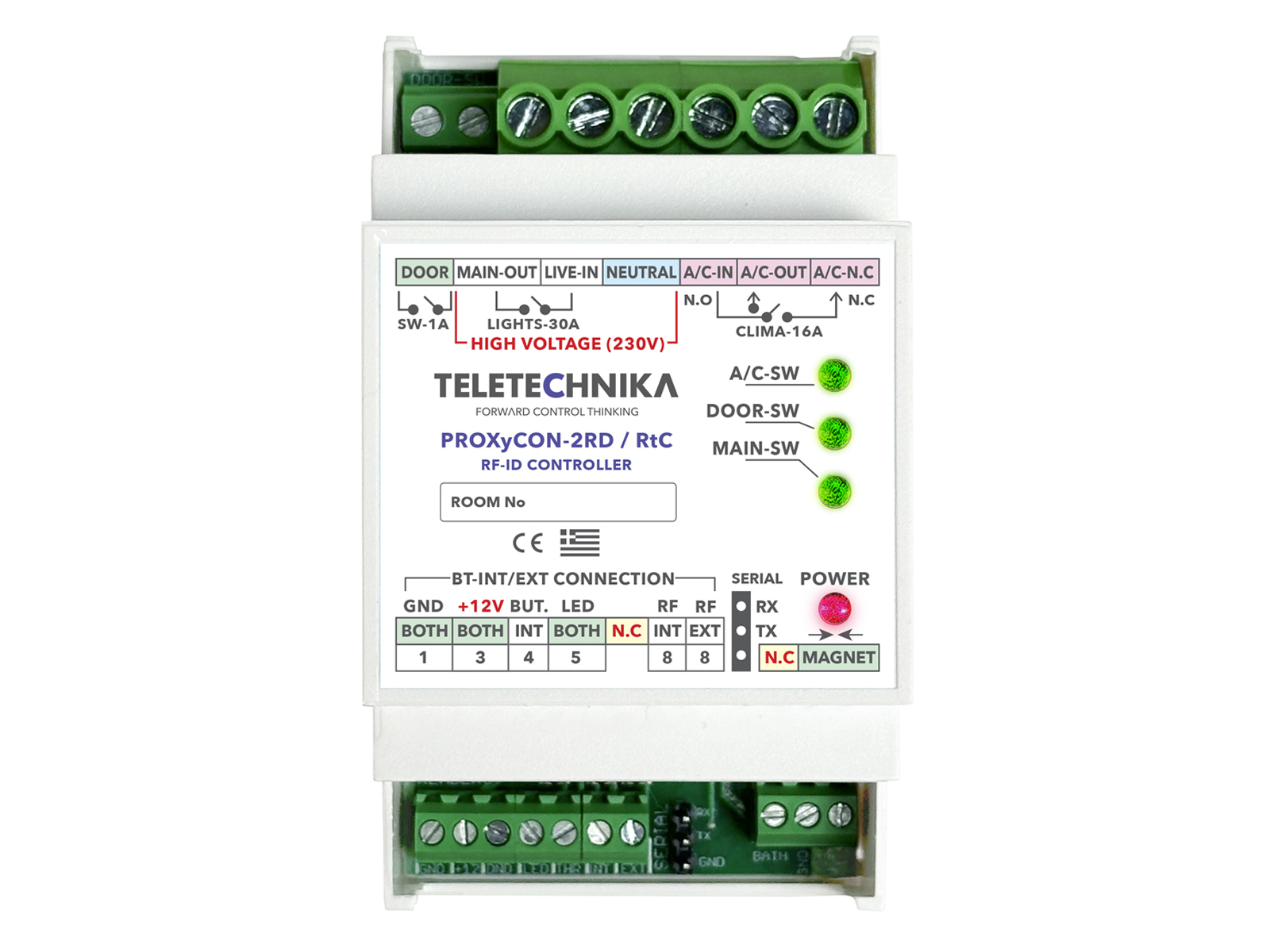 Controller οικονομίας ρεύματος και πρόσβασης τύπου ράγας σε συνεργασία με πρίζες προσέγγισης καρτών RFiD.
