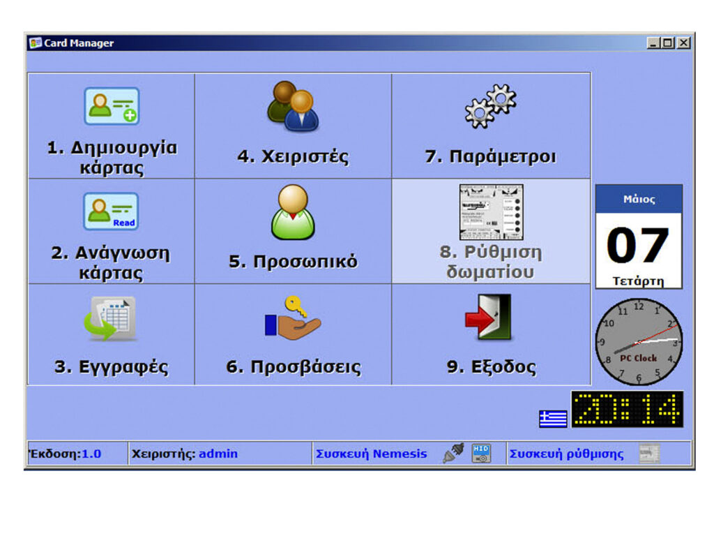 Πρόγραμμα προγραμματισμού καρτών RFiD και διαχείρισης πρόσβασης χώρων του ξενοδοχείου.